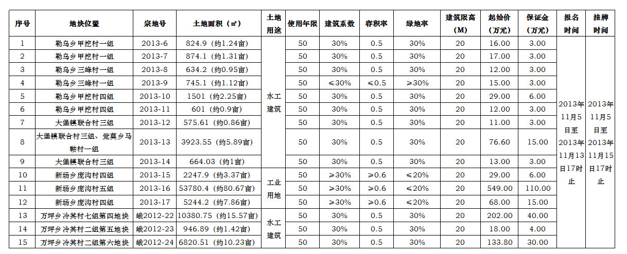 经峨边彝族自治县人民政府批准,我局将在峨边彝族自治县国土资源局公开挂牌出让15宗国有建设用地使用权,现将地块有关情况公告如下: 一、地块的基本情况和规划要求: